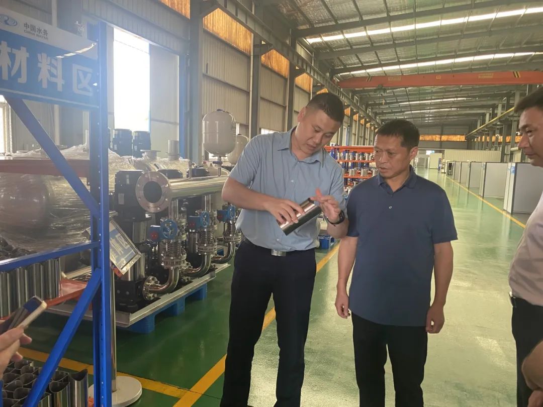 總經理陳科宇向劉總一行介紹罐式無負壓供水設備以及穩(wěn)壓補償式(二代)無負壓供水設備